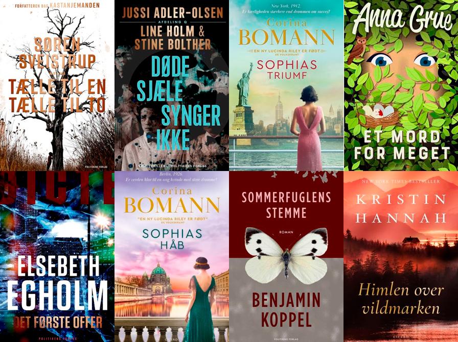 Men det er ikke kun spænding, der hitter. Corina Bomann har hele tre populære romaner på listen,  Sophias håb, Sophias drømme og Sophias triumf hvor stærke kvinder og familiens bånd er i centrum.